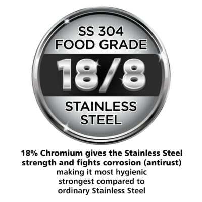 - 18Cr/8Ni AISI 304 Food-grade Stainless Steel body and lid – Stays bright, does not pit or corrode, is extremely hygienic